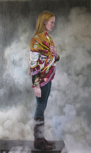 Based on a fairytale illustration by Ivan Bilibin, van Dongen's traveller is no sweet Cinderella. Engulfed in a Matthias Grunewald-ish forest, the dark forces of nature are dwarfed by her own self-possession. Drawing on a Comme Des Garçons chic, van Dongen presents not an incongruity of time, but a sense of a displacement of chronology, a possible now, set somewhere else. Patricia Ellis